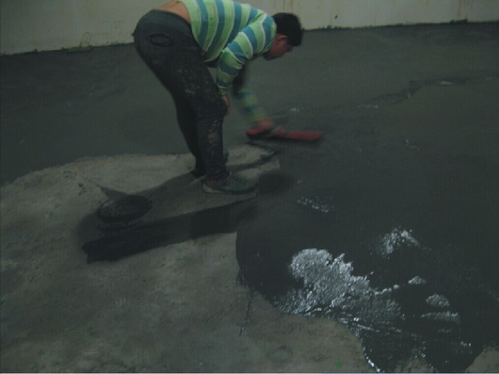 4)若基層有滲漏,須事先進(jìn)行防水處理。 基層表面的裂縫要剔鑿成 “V” 型槽,并用自流平砂漿修補(bǔ)平整。凹坑、孔洞均也須用自流平砂漿修補(bǔ)平整。